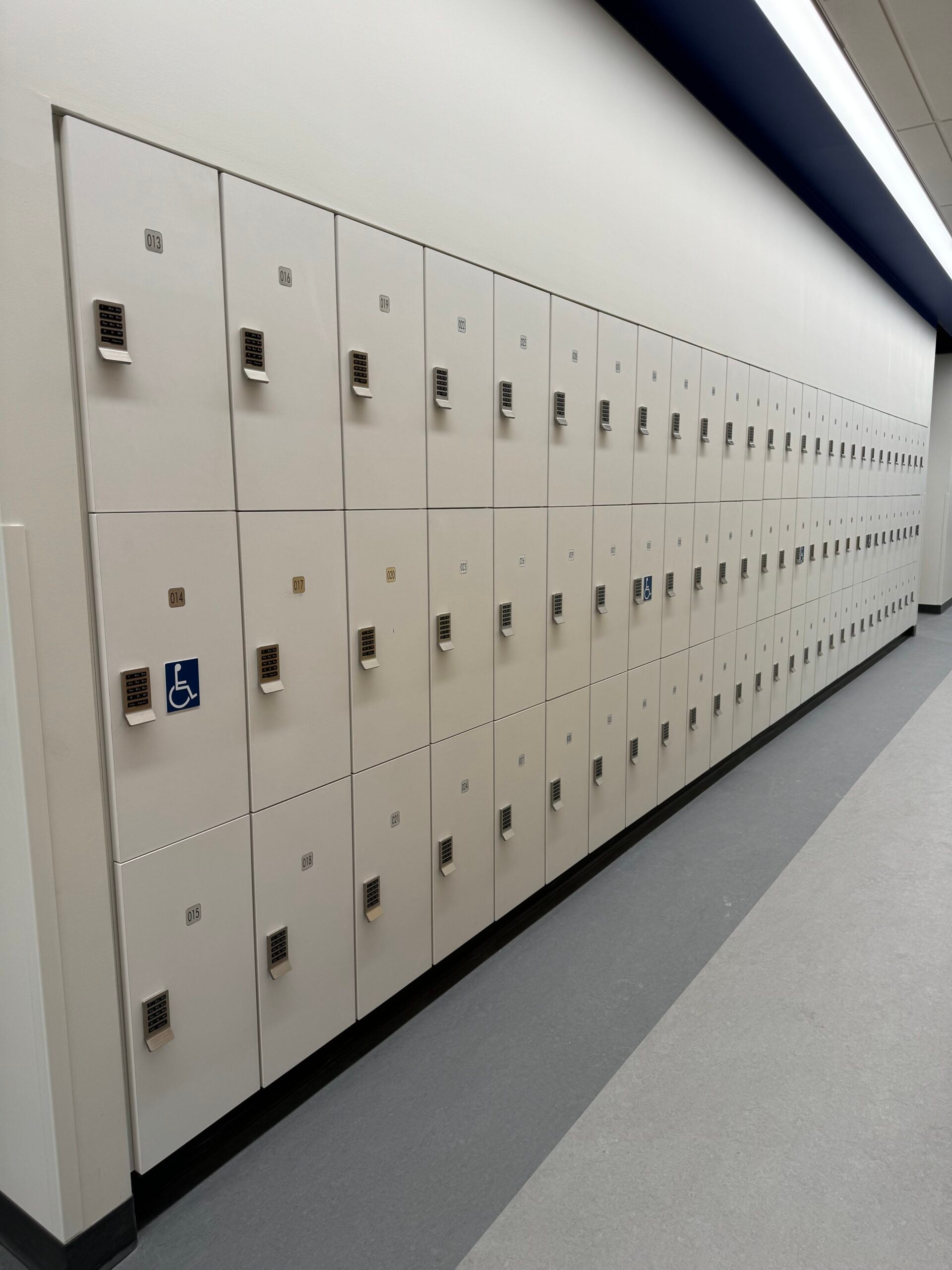 Cabinets are being installed on Floor 3 as well as new LED lighting. This includes the Simulation Suite exam rooms, teaching labs and storage closets. Room painting, including accent walls, is completed through Floor 7 and many of the ceilings (both drop ceilings and exposed) are being finished. Carpet is covering much of Floor 4’s offices and additional flooring covers are being installed in the new Musculoskeletal Lab and Foods Lab.